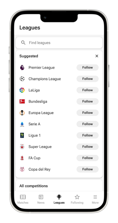 Once you have downloaded the app, you can customize it to follow your favorite football leagues and teams. You can select from an expansive range of leagues and competitions, including the English Premier League, Italian Serie A, Spanish La Liga, German Bundesliga, and many others.